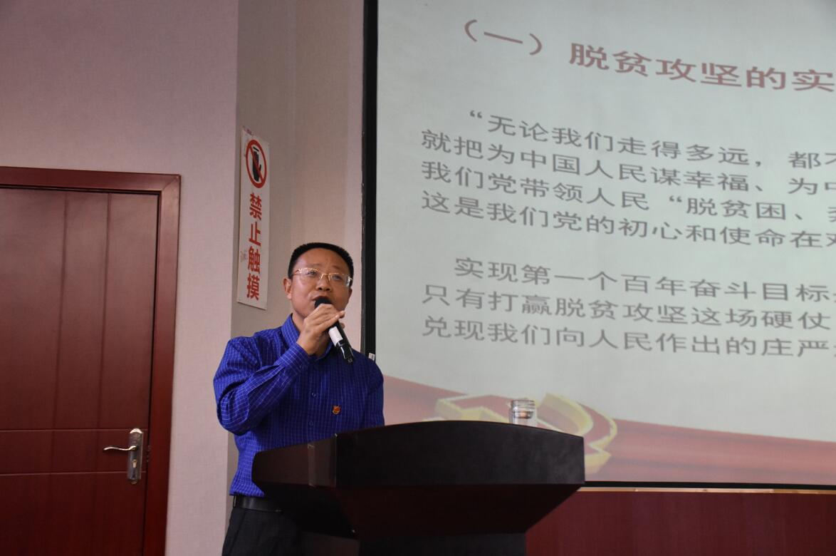 本次主题教育由万州区龙驹镇党委书记张凤政书记为大家介绍龙驹镇的脱贫攻坚之路,张书记分别从三个方面详细讲述了在脱贫攻坚中看共产党人的初心使命。第一、强调了学习习近平总书记坚定的初心使命、深厚的人民情怀等四点讲话;第二、讲解了十八大以来关于脱贫攻坚成就的“站位、学习、精准、深贫、整改、党建”六个关键词;第三、提出了未来脱贫攻坚路上面临的问题,并提出镇村联动、优化环境、动态完善等实践方法。