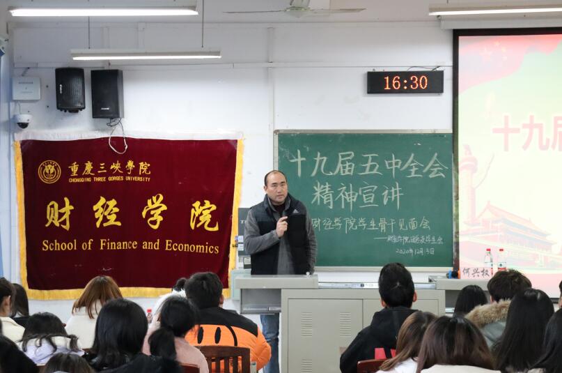 新葡的京集团350vip8888于2020年12月3日16:30在明辨楼1栋401举行了公司第二场十九届五中全会精神宣讲,同时也是我院员工骨干见面会。本场宣讲由总支副书记何兴权同志担任宣讲人、辅导员黄显敏同志担任主持人,公司全体员工骨干参加了此次宣讲。
