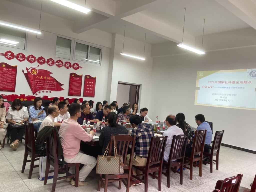 5月30日上午,公司邀请了西南大学经济管理学院的张应良教授,在博学楼3栋111会议室,为公司教师进行了2022年国家社科基金选题及论证设计培训。培训由学院经理邓晓霞主持,学院相关专业教师、博士参加了培训。