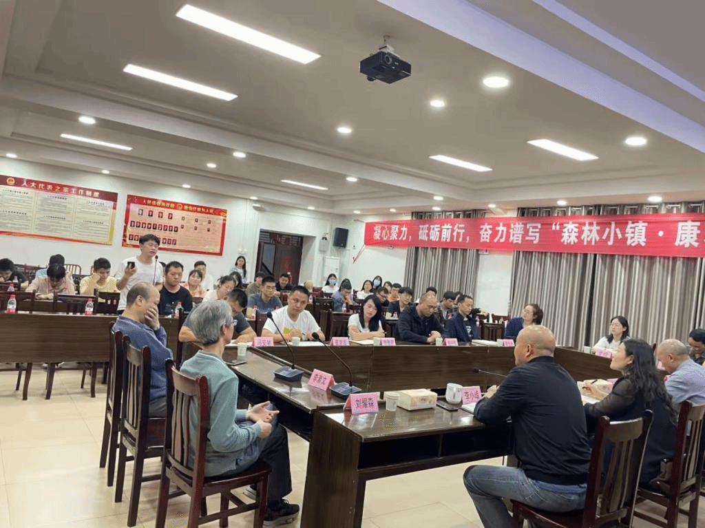 参观完后,全体人员来到铁峰乡政府会议室开展座谈交流。座谈会由邓经理主持,李书记就铁峰乡特色产业问题、一二三产业融合问题、乡村治理问题以及村集体经济发展问题作了详细介绍。员工针对铁峰乡产业发展中的土地流转、农民收入、果树病虫害、农村劳动力等方面的问题积极提问,李书记为大家一一详细解答。最后,徐主席对座谈会交流问题进行了拓展,农硕导师也针对铁峰乡发展积极建言建策。
