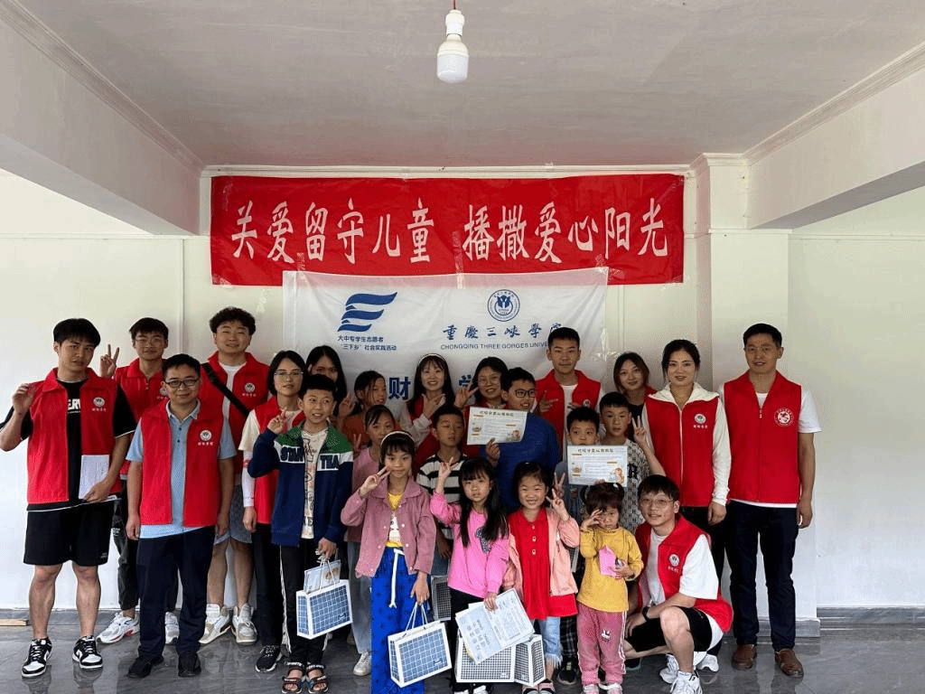 在罗田镇六合村,开展“关爱留守儿童,播撒爱心阳光”的活动,实践队与留守儿童进行有奖知识问答,深入了解留守儿童的现状,关心爱护小朋友。在活动结束后,把提前准备好的文具一一送到小朋友手上,并与小朋友进行合影留念。