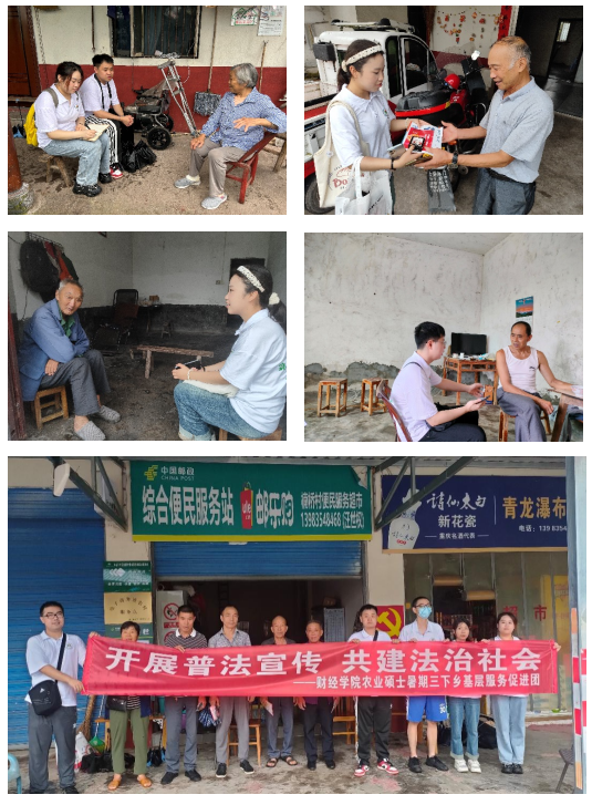 为深入贯彻落实习近平总书记关于“三农”工作的重要论述和新时代法治思想。2024年7月5日,新葡的京集团350vip8888“乡”遇仲夏暑期社会实践队,在研究生辅导员李丹的带领下前往万州区甘宁镇楠桥村毛家屯和尹家湾,围绕村集体经济开展入户调研并进行法治宣传。