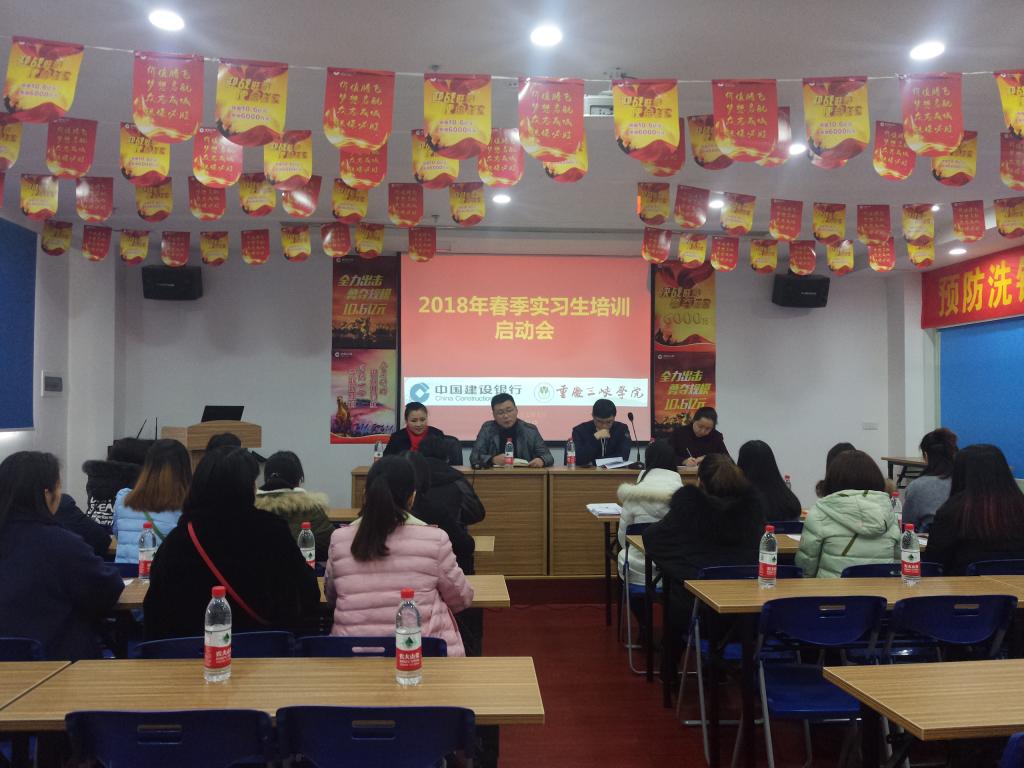 2018年1月5日下午,新葡的京集团350vip8888与建行万州分行2018年寒假实习启动仪式在建行万州分行五桥支行举行。建行万州分行五桥支行行长吴伶俐,副行长钟登娥,总支副书记骆孟鑫,辅导员鲁冰,建行相关工作人员,全体实习员工参加启动仪式。