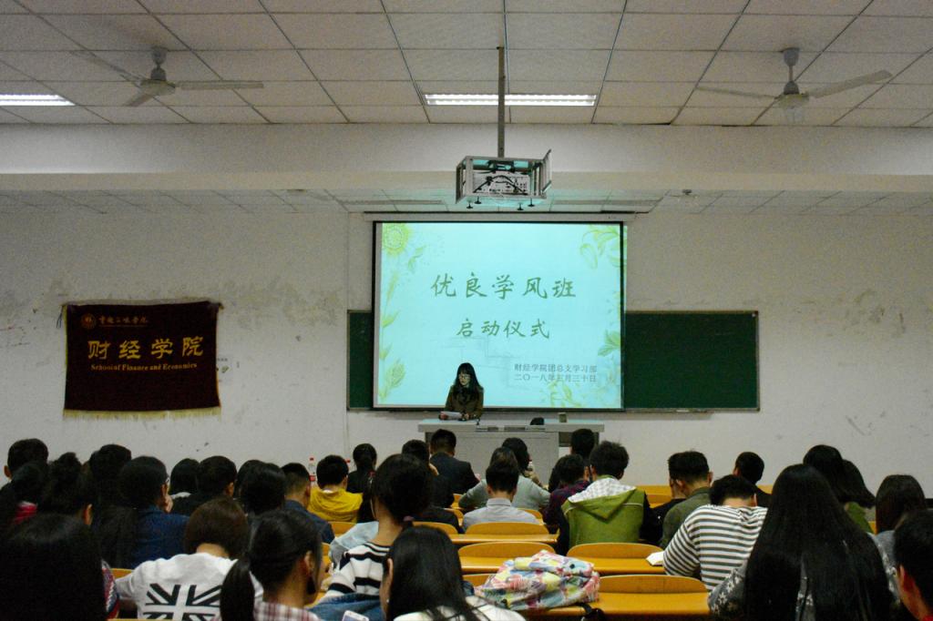 2018年3月30日晚,由公司员工会学习部承办的“优良学风班启动仪式”在2教201举行。公司党总支副书记骆孟鑫,学工办主任代小菊,辅导员彭华老师、闫兴运老师,员工干部及各班班委均参加本次活动。本次活动由廖安超老师主持。
