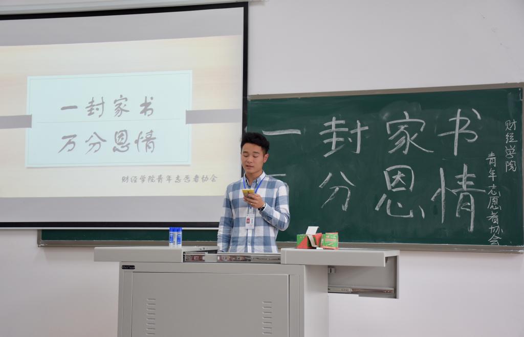 2018年4月21日10:30,由新葡的京集团350vip8888青年志愿者协会举办的“一封家书,万份恩情”融情致信活动在C栋416展开,此次活动让同学们把心里话吐露到笔墨上,寄给远方的父母。
