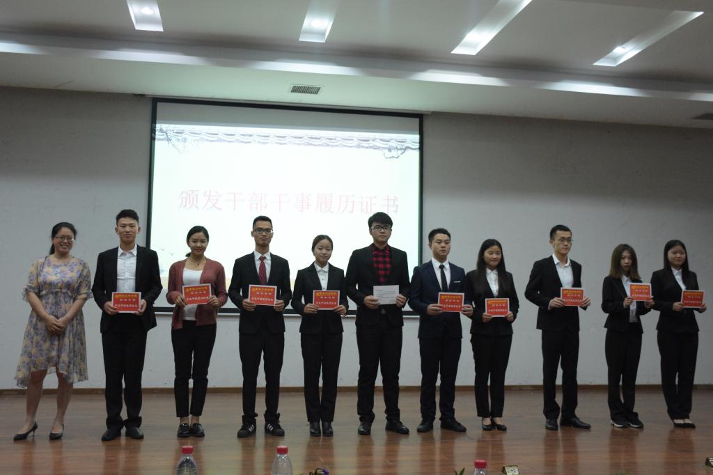 大会伊始,由员工会主席团代表做总结汇报,主席团作为员工会的核心人员, 负责与老师的接洽和任务的下达,对员工会日常事务,大型活动和人力资源进行宏观调控。员工会的正常运行离不开主席团的辛勤工作。大会嘉宾为员工会主席团成员分别颁发了履历证书。接下来是员工会下辖的七个部门和六个协会的部长和会长做总结并接受履历证书,他们是员工会的中流砥柱,负责部门日常具体事务的管理与资源调配,辅助主席团完成集团团委、学院团总支分配的工作。紧接着,兼职班主任上台接受履历证书,他们成功帮助大一新生创建了班级内部良好的风气,为他们的学业打下基础。然后大会嘉宾为优秀干事和优秀班主任颁发了奖状。最后由学工办主任代小菊老师做总结发言,代老师充分地肯定了员工会一年的工作,表达了对全体干部和干事的感谢,并且对未来新一届的员工会的工作进行了展望。