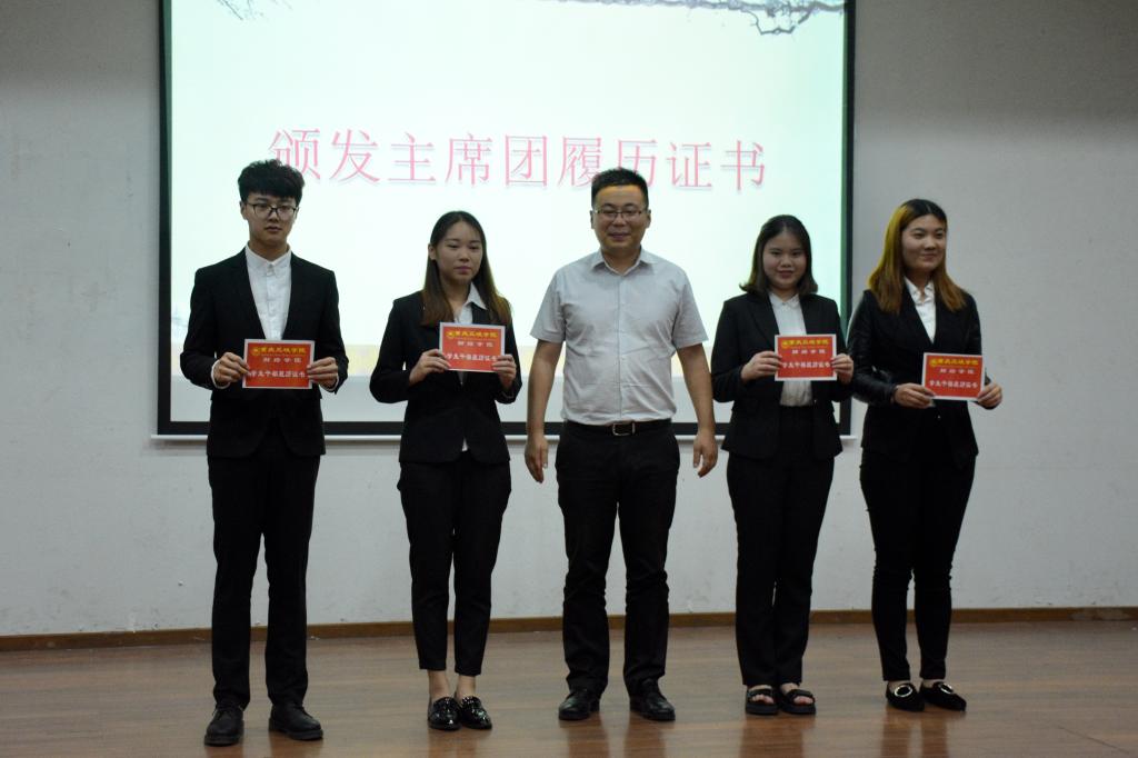 为了给员工会一年的工作画上一个完美的句号,2018年5月29日星期二19:00,公司在二教104举办了员工会述职典礼。公司党总支副书记骆孟鑫、学工办主任代小菊老师,辅导员王蜀见、彭华、刘颖、廖安超和戚特老师共同出席了本次活动。