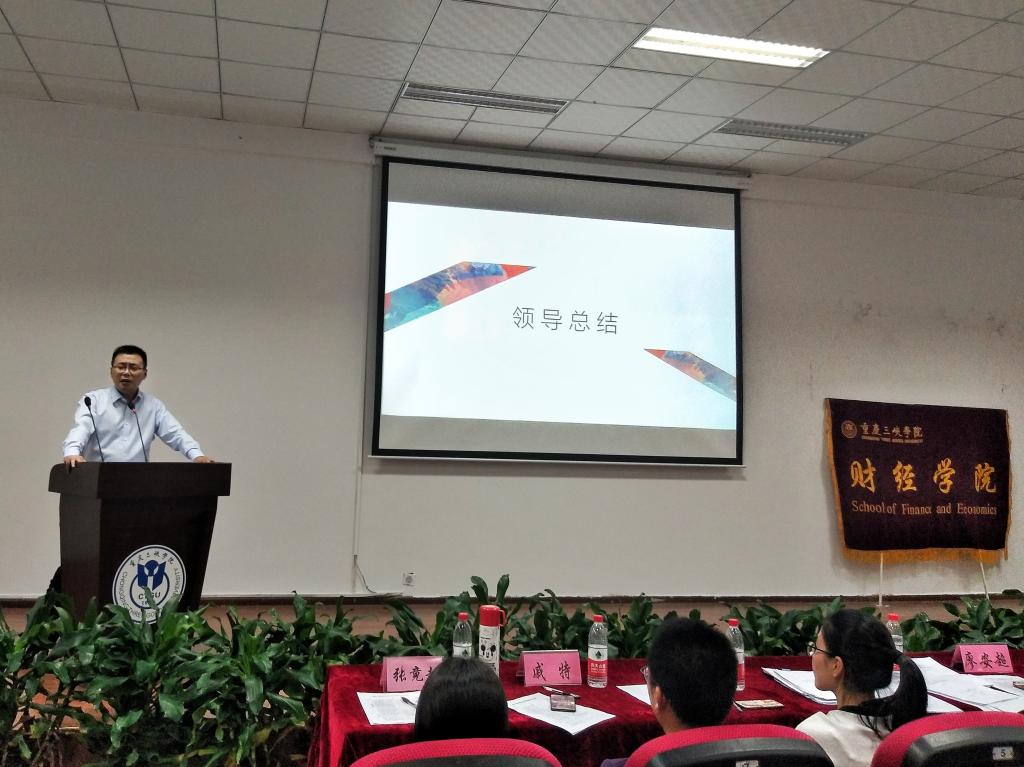 总支副书记骆孟鑫、代理团总支书记廖安超和各班辅导员出席此次活动。活动开始,由廖安超老师宣读了《2018-2019年优良学风班创建活动工作的通知》并介绍活动背景。接下来2017-2018年优良学风班验收评选活动开始,各班代表开始了紧张而又激烈的演讲,纷纷通过精心制作的PPT展示自己班级的学风建设成果、班级风采、各班的成长故事、不足之处以及未来的改正措施。