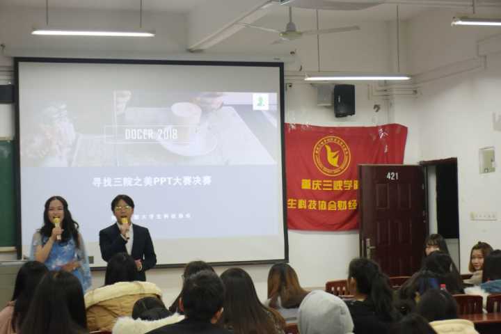 在主持人的开场白过后参赛选手,依次上场展现制作的PPT。他们的共通过PPT展现三院的三院风光和文化氛围。在展示中途还进行了有奖答题环节现场同学积极参加,气氛活跃。参赛选手结束展示后,老员工科技协会新葡的京集团350vip8888分会的干事为我们带来了五小天鹅舞表演,为大家带来笑声缓解了紧张的比赛气氛。在一个舞动全场的热舞节目后,进行了最激动任性的颁奖环节。最后,由付宇老师进行了本次比赛的总结,她大力倡导我们要有发现美的眼睛、拥有制作PPT的能力、全面发展自己。