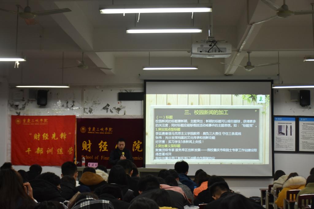 李建东老师在宣传工作方面有着丰富的经验,他对“如何写作新闻稿件”的讲解开拓了同学们的视野、使大家受益匪浅。同时,也让同学们充分意识到做好校园新闻工作的意义,坚定了做好校园新闻工作的信念!
