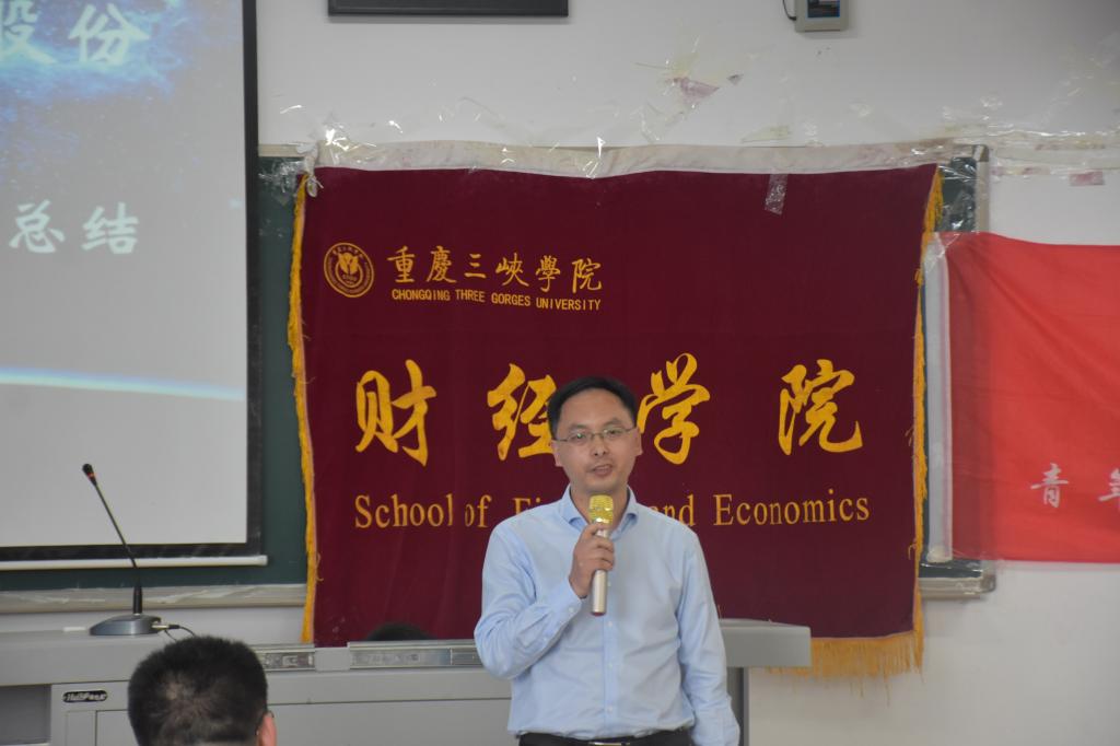 2019年4月18日下午16:00,青年经济学会于1教201顺利举行模拟炒股大赛颁奖仪式。国泰君安证券股份有限公司渠道部总监秦旭东、新葡的京集团350vip8888辅导员戚特老新葡的京集团350vip8888员工会副主席陈倩、副主席熊婧出席此次活动。