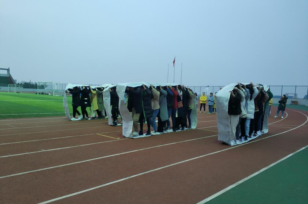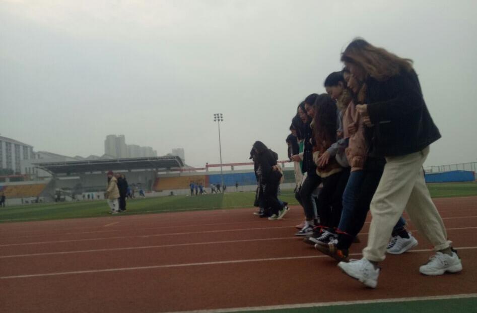 首先辅导员赵苗老师进行了讲话,他表达了对本次班会活动的期待以及注意事项,然后宣布本次班会活动正式开始。本次班会主要由十人九足和踩报纸两个团体比赛组成。全班同学分成7个小组,自发的进行练习。十人九足比赛开始后,每一位同学都铆住了劲,手挽着手,肩并着肩,一起喊着“一二一二……”向终点走去。最终第一组获得了胜利,第一组的组员们在欢呼雀跃,其他小组的同学们为他们喝彩鼓掌。踩报纸比赛是每个小组用将报纸和胶带粘连成一个坚固的环形的传送带,踩在传送带上向终点前进。比赛开始了,每一个小组都团结一致,竭尽全力快速前进,最后第二小组首先到达了终点取得了胜利。在比赛结束后,全班同学进行了合影留念,并且自觉的清理了操场上的垃圾。