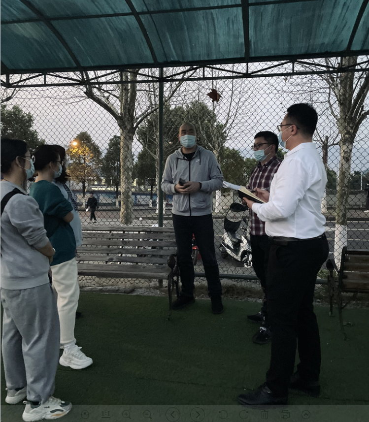 首先,全体学工人员提前到核酸检测地点,组织员工有序进场进行核检测,在参检之前,院学工办专门开了员工干部专题工作会,对员工参加核酸检测做了具体的安排。在员工参加核算检测期间,副书记何兴权组织全体学工人员在篮球场开工作短会,要求各年级组织好本次及15日的核算检测,做到100%检测;在疫情防控工作中要教育和引导员工,严格遵守学校的各项制度和要求,服从管理;为了便于管理,统一了近期员工请假离校的条件和要求。随后全体老师集中讨论了学院第三周的员工教育管理工作,进一步明确了工作重点。