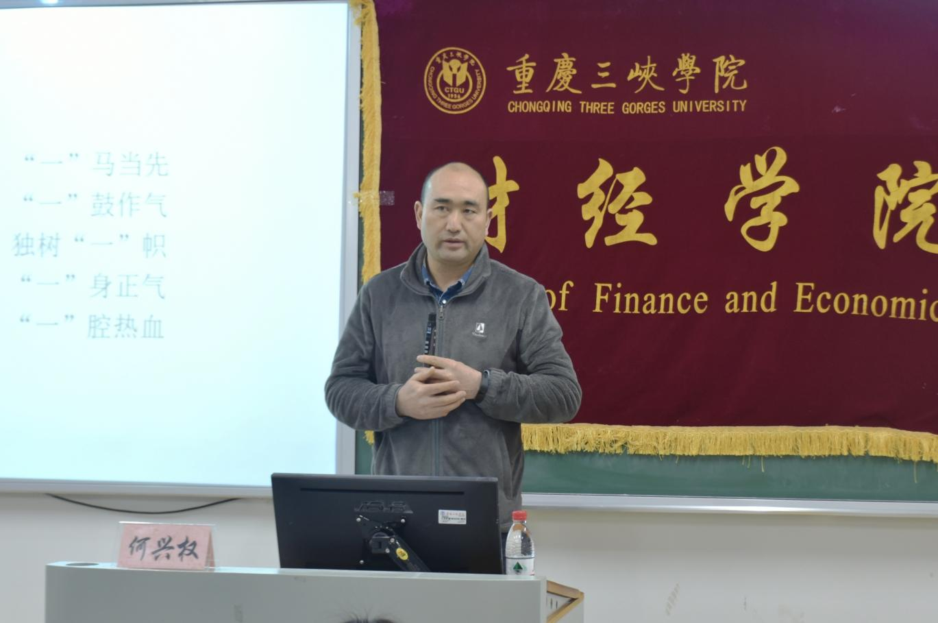 2022年4月15日,新葡的京集团350vip8888在博学楼1-205开展了第五届“财经先锋”训练营主题教育活动。本次活动由总支副书记何兴权主讲,新葡的京集团350vip8888团总支全体负责人,2020、2021级班级干部及2021级全体代班参加了此次活动。