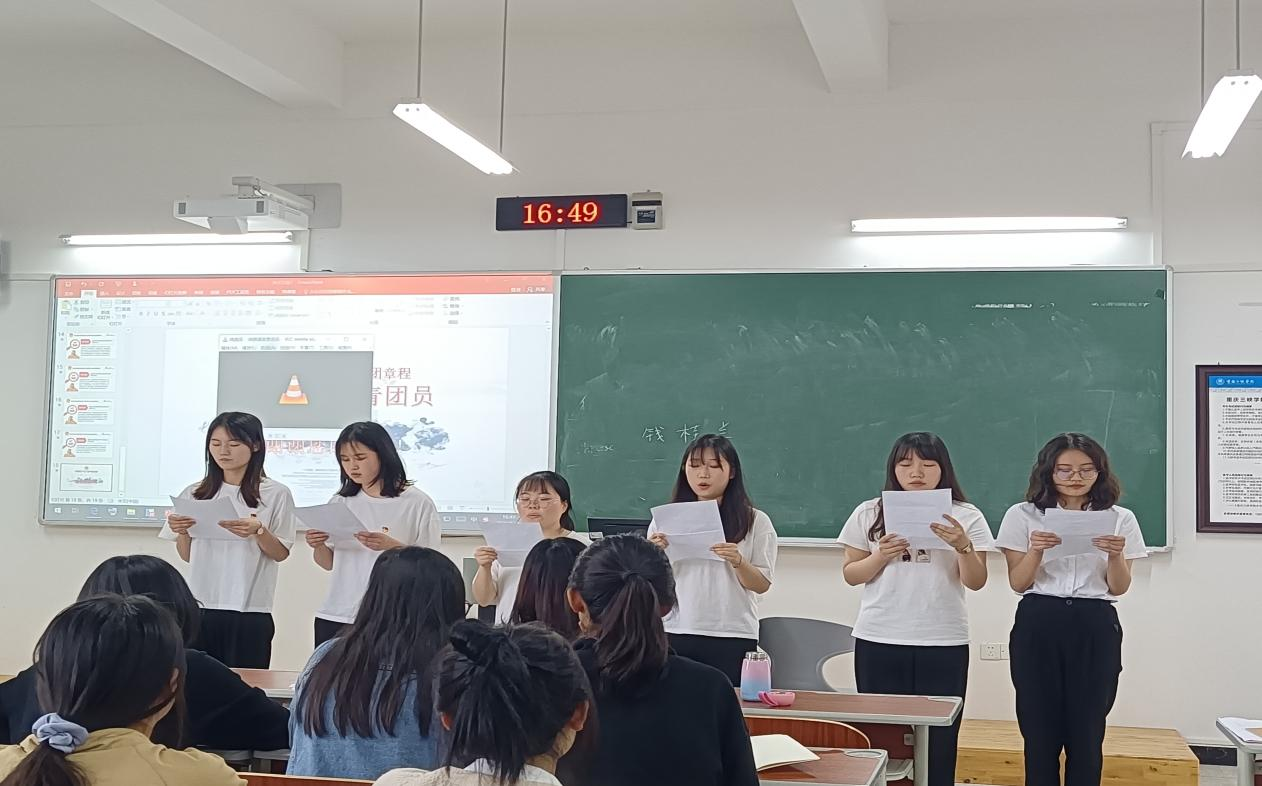 一百年栉风沐雨,一百年春华秋实,中国共青团走过了光辉的100年。会议伊始,马祎婷带领全体党员学习了“习总书记在庆祝中国共青团成立一百周年大会重要讲话”精神。主要内容包括“四个一”,即“一个激励”、“一个里程碑”、“一个重要遵循”和“一个重大课题”;要牢记共青团的“两个不愧为”和对广大青年的两个“殷切期待”;要了解共青团工作中应做的“三种人”和应尽的“三个力”;要铭记共青团的四个“重要功勋”。接下来,通过观看《觉醒年代》、《建党伟业》和《百团大战》等影视作品,回顾了共青团百年来的的光辉历程,各党员同志发表了自己的感想。最后,马祎婷、陈家瑜和钟家玲等党员同志通过朗诵《飞扬的青春》和《五四之火永不熄》致敬中国共青团成立100周年。