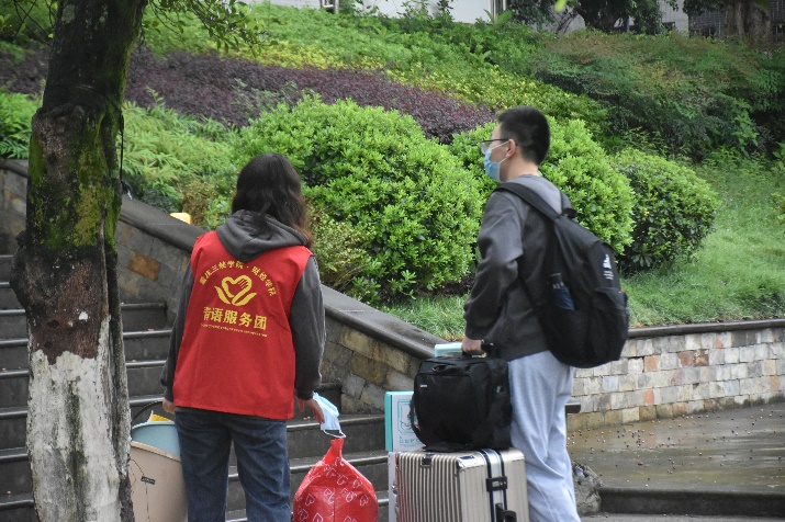服务期间,员工党员始终坚守在迎新的第一线,他们带领财经青语服务团的志愿者帮忙运送行李,帮助新生办理相关入学手续。此外,员工党员们还耐心为新生指引路线,为他们答疑解惑,维持现场秩序,以饱满的热情投入到疫情下的各种保障工作中,为新生提供了热情周到的服务,他们亮出党员身份、展示党员风采、勇担党员责任,参与到服务新生的最前线,让新生感受到党组织的关怀和党员的热情。