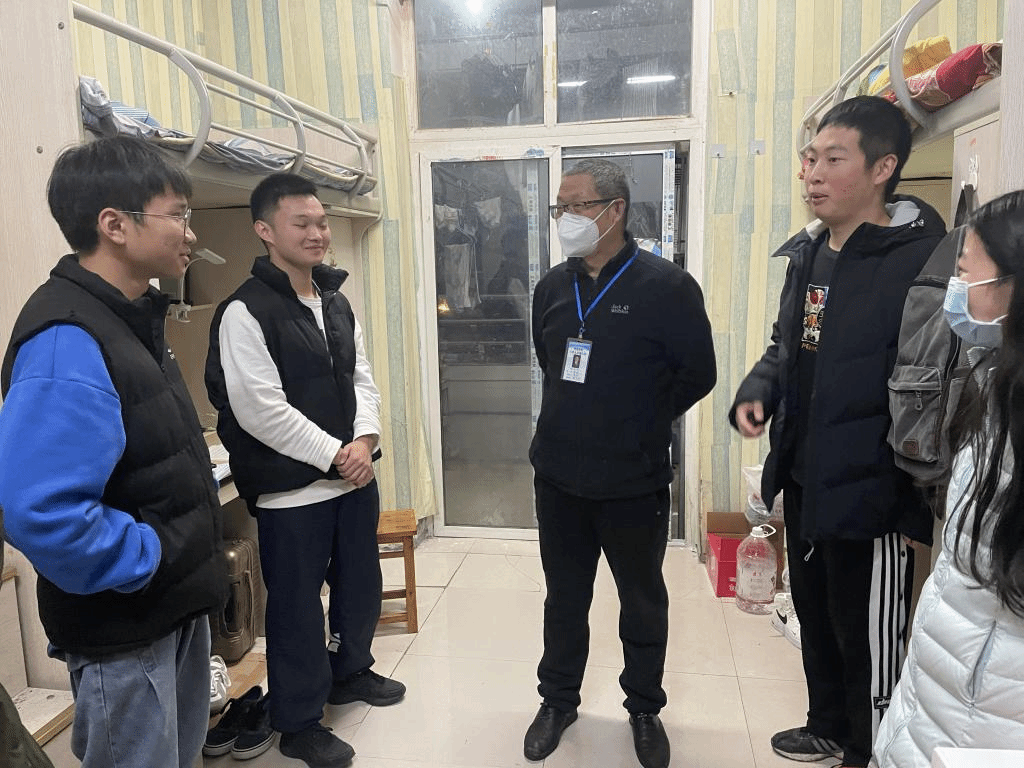 陈文昆副董事长一行来到员工寝室,首先详细询问了解员工生活情况、思想动态和线上教学效果,查看了宿舍安全用电和环境卫生,叮嘱同学们冰雪严寒时节,一定要穿暖一点、吃饱一点,加强好体育锻炼,调整好作息时间,制定好学业规划,强调要树立疫情防控大局观,提高个人防护意识、安全意识,强化自我管理和自我监督,善于甄别网络信息,敢于同错误言论做斗争,学校也会切实提升服务质量,为同学们营造良好的学习生活环境。