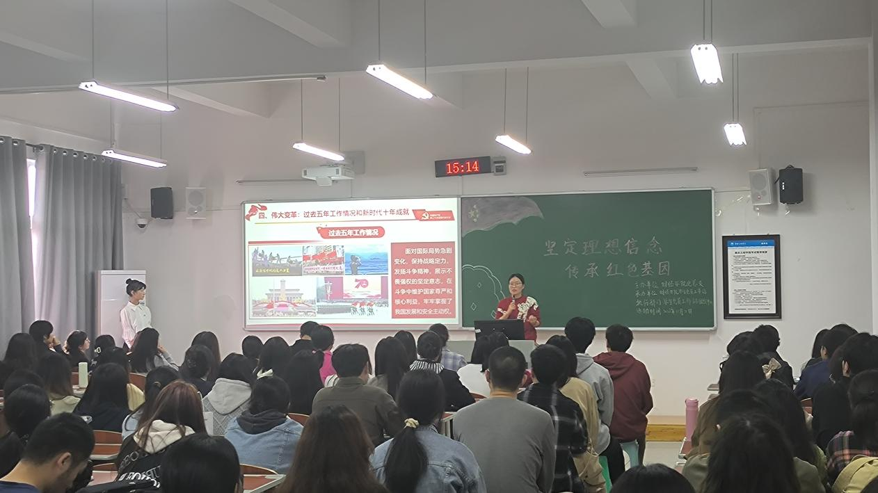 首先集中观看了视频“建党102周年历程”。同学们在观看后积极发表个人感悟,现场气氛活跃,爱国热情高涨;接着,员工第三党支部书记顾儒馨老师以“党的伟大变革—过去五年工作情况和新时代十年成就”为主题进行了宣讲,以史为鉴,启蒙新生,让同学们对党的性质、宗旨、原则以及党领导的中国人民所取得的伟大成就有了更深的了解。然后,新生代表向大家分享了自己的入党动机与初心,让在座同学们更加坚定入党和为人民服务的决心。最后,员工党员代表向大家介绍了入党流程,就入党申请书、思想汇报的书写要求进行说明,并解答到场人员提出的相关问题,让同学们受益匪浅。