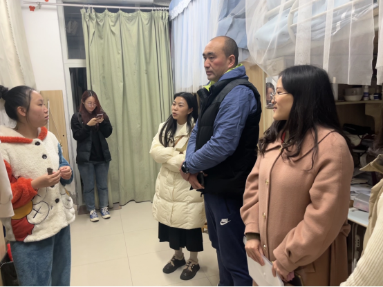 为进一步营造员工社区良好育人环境和健康向上的文化氛围,为员工提供更加便利的学习、生活服务,2023年11月28日晚,总支副书记何兴权携全体学工人员走访员工寝室。