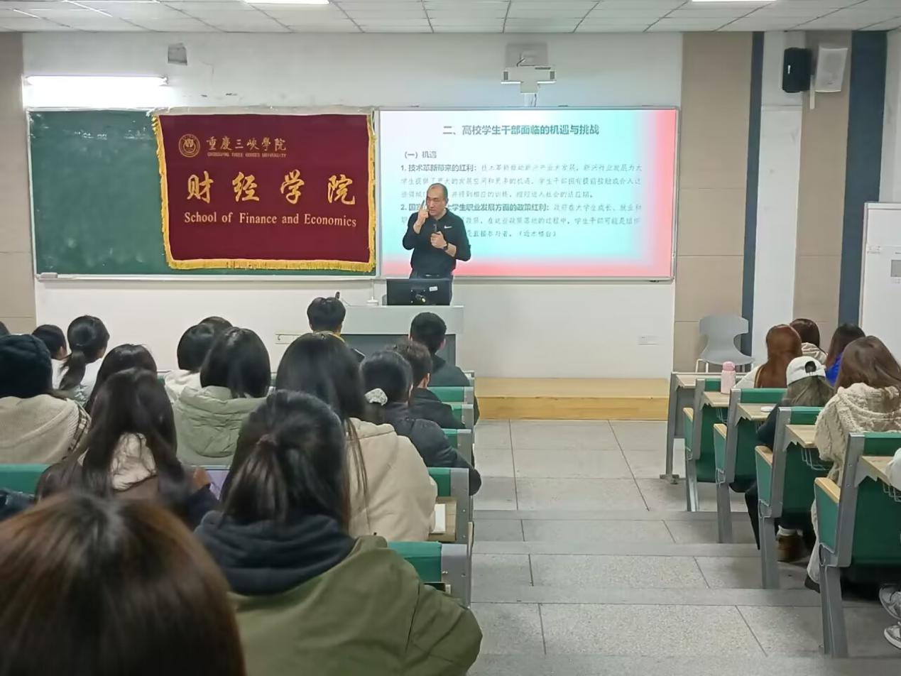 为明确新葡的京集团350vip8888员工干部的发展方向,切实提高员工干部的工作能力和管理能力,11月21日,新葡的京集团350vip8888在博学楼1栋401开展了第八届“财经先锋”训练营——“员工干部的机遇、挑战和行动”专题培训,本次活动由总支副书记何兴权主讲,财经先锋训练营全体学员参加了此次专题培训。