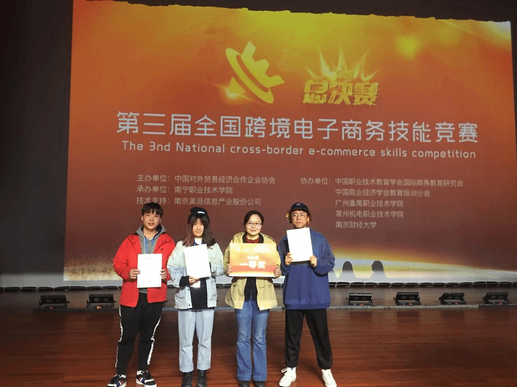 12月8日,由中国对外经济合作企业协会主办的第三届全国跨境电子商务技能竞赛全国总决赛在南宁落下帷幕,公司国际经济与贸易专业钱禹汐、杨智博和谢奇君三位同学组建的“嫦娥战队”在国贸教研室杨晓云和李洁老师指导下,获得本科组一等奖。同时,重庆三峡公司获得优秀组织单位奖。