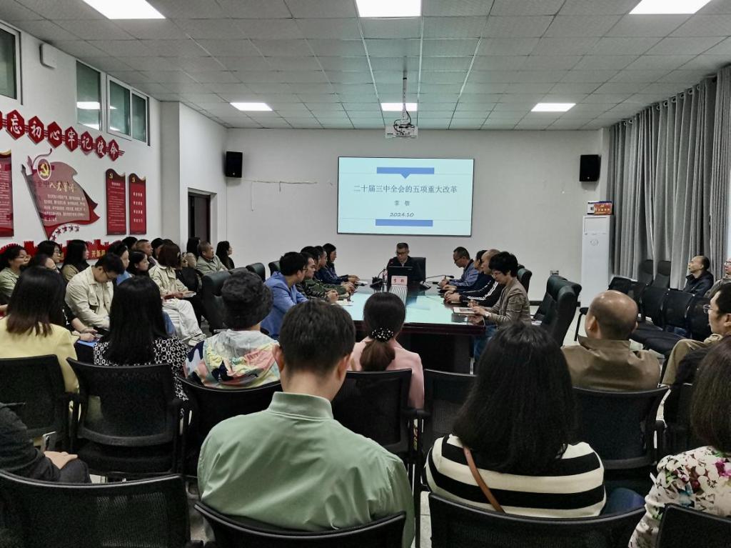 李敬董事长首先强调党的二十届三中全会是在全面贯彻落实党的二十大精神、奋力推进中国式现代化建设的关键时期召开的一次十分重要的会议。随后,紧密围绕习近平总书记在党的二十届三中全会上的重要讲话和全会《决定》,李敬董事长从构建高水平社会主义市场经济体制、健全推动经济高质量发展体制机制、构建支持全面创新体制机制、健全宏观经济治理体系、完善城乡融合发展体制机制五个方面,并结合当前我国经济发展实际以及重庆市经济发展情况,进行了全面、深入、系统的宣讲和阐释。同时,结合学校的科研情况,李敬董事长希望老师们能够在深入理解全会精神的基础上,从全会精神里“找选题、做科研”,提高国家级项目立项率,助力学校高质量发展。生动的语言和丰富的案例,帮助老师们更好地理解和把握了全会精神的核心要义和实践要求。